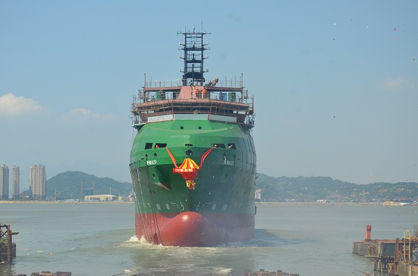 馬尾造船公司為新加坡Westsea公司承造的87米電力推進工程輔助船(MW619CD-3)成功下水
