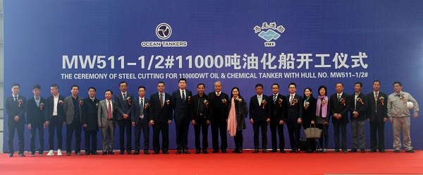 當(dāng)日,馬尾造船為OCEAN TANKERS公司建造的11000DWT油化船(MW511-1/2#)迎來(lái)盛大的開(kāi)工儀式,興隆集團(tuán)(OCEAN TANKERS公司)總裁林恩強(qiáng)與福船集團(tuán)黨委書(shū)記、董事長(zhǎng)趙金杰共同為項(xiàng)目開(kāi)工點(diǎn)火。